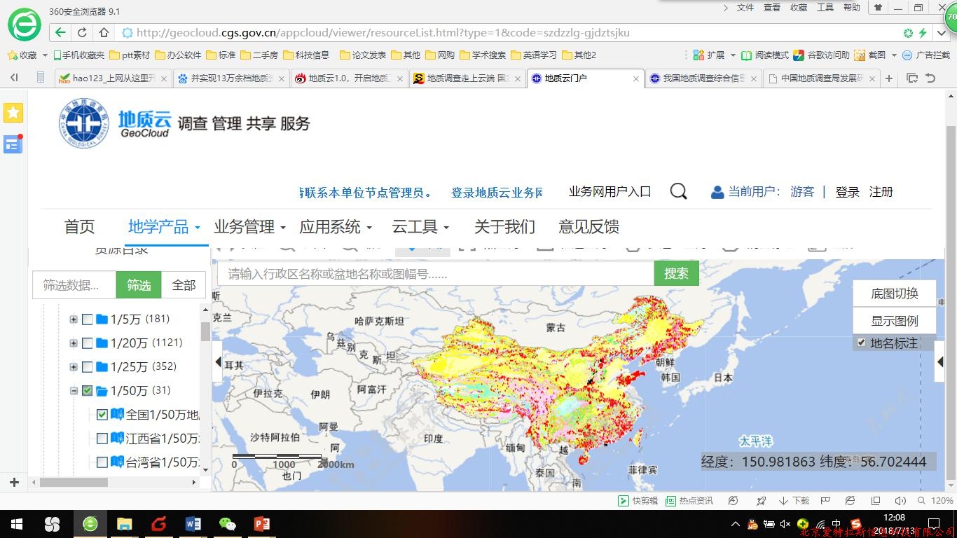 2017年11月6日,“地質(zhì)云1.0”正式上線(xiàn)服務(wù)?!暗刭|(zhì)云1.0”整合、匯聚了大量地質(zhì)數據與產(chǎn)品資源,各節點(diǎn)地質(zhì)數據分布存儲、統一發(fā)布、集中服務(wù),基于MapGIS云平臺共完成了70多個(gè)國家核心地質(zhì)數據庫處理與云端統一注冊管理,形成了369個(gè)在線(xiàn)數據服務(wù)接口。通過(guò)對地質(zhì)調查成果、專(zhuān)用設備和專(zhuān)業(yè)軟件等梳理、整合,構建了8大類(lèi)的地質(zhì)云信息產(chǎn)品體系,整理上線(xiàn)地質(zhì)信息產(chǎn)品2382項,并實(shí)現13萬(wàn)余檔地質(zhì)資料、2986幅公開(kāi)版地質(zhì)圖、海量圖書(shū)文獻、地學(xué)科普等各類(lèi)產(chǎn)品的統一接入,形成有序、規模、權威的地質(zhì)信息資源統一服務(wù)平臺。