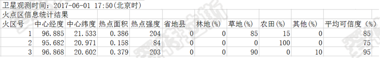 利用高頻次氣象衛星進(jìn)行火點(diǎn)判識,主要是遙感分析的手段判識火點(diǎn)像元的經(jīng)緯度、所在位置的行政區劃、土地利用類(lèi)型、火點(diǎn)判識的可信度(火點(diǎn)、可能火點(diǎn)、云區火點(diǎn)等)等。