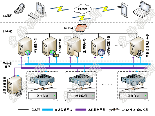 采用適合于海量數據的大規模存儲與高性能并行處理的“存儲—計算”一體化的分布式高性能構架是一種典型的無(wú)共享系統構架,分而治之的辦法,將數據規律地分布到節點(diǎn)上,充分利用節點(diǎn)主機的I/O能力,以使總體達到最大的I/O速率。