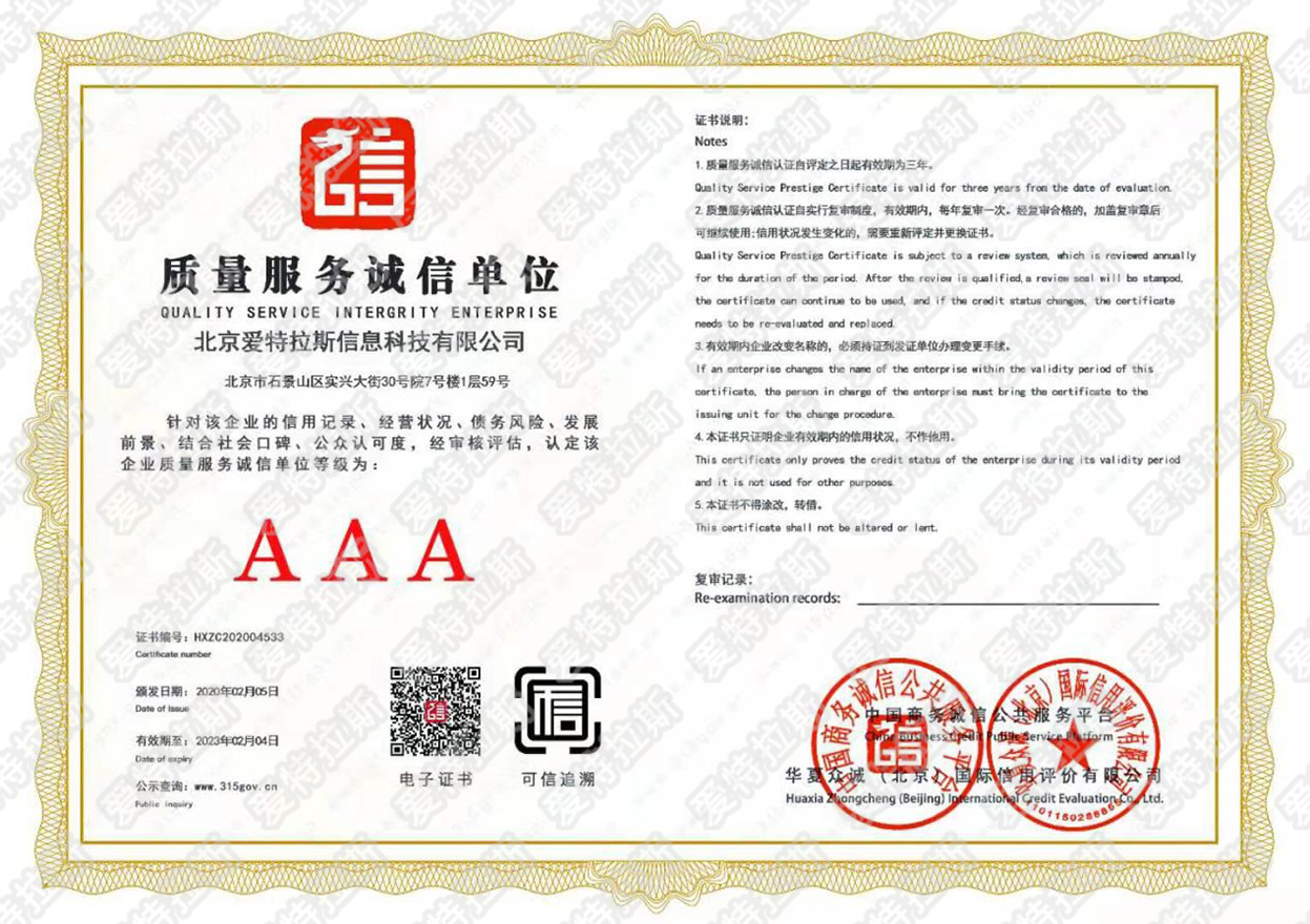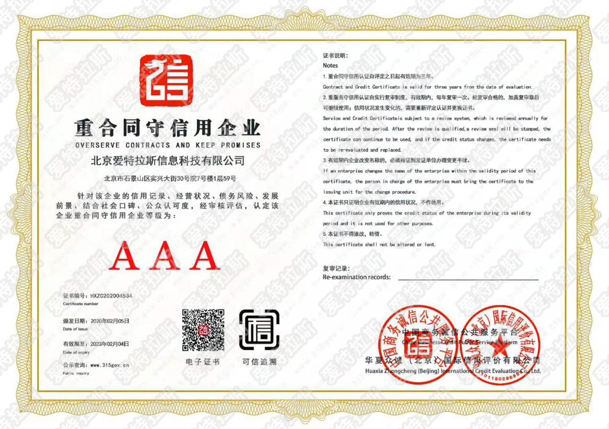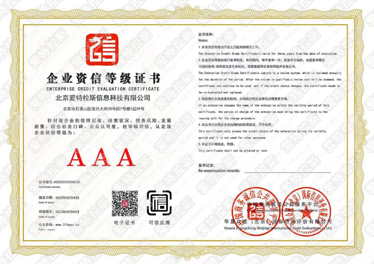 愛(ài)特拉斯獲得信用企業(yè)3A體系認證